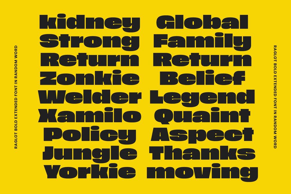 Raglot creates a bold, Modern feel, This allows you to immediately use a bold style on large titles and posters.